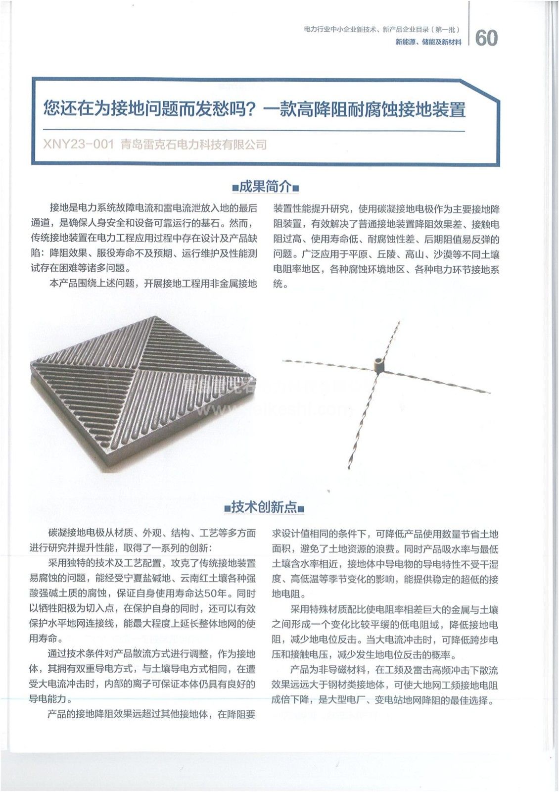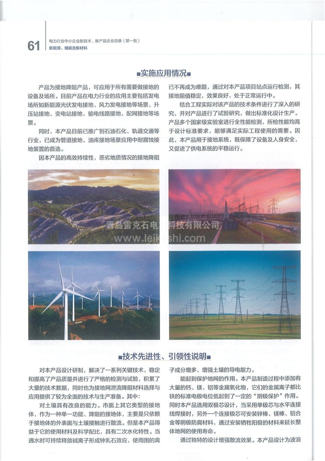 青島雷克石產(chǎn)品入選中電聯(lián)《電力行業(yè)中小企業(yè)新技術(shù)、新產(chǎn)品企業(yè)目錄》